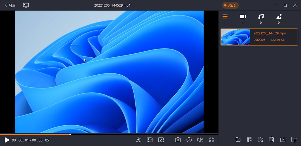 녹화 프로그램 UI는 잘 만들어져 있습니다. 녹화 버튼도 눈에 잘 보이구요.