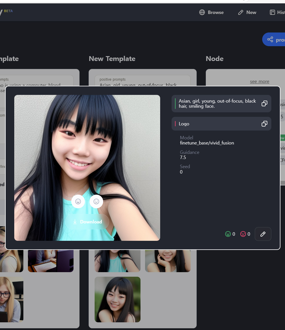 프롬프트에 원하는 내용을 넣고 네거티브 프롬프트에는 빼고 싶은 내용을 넣어서 계속 더 나은 이미지를 만들어 나갈 수 있는데요.