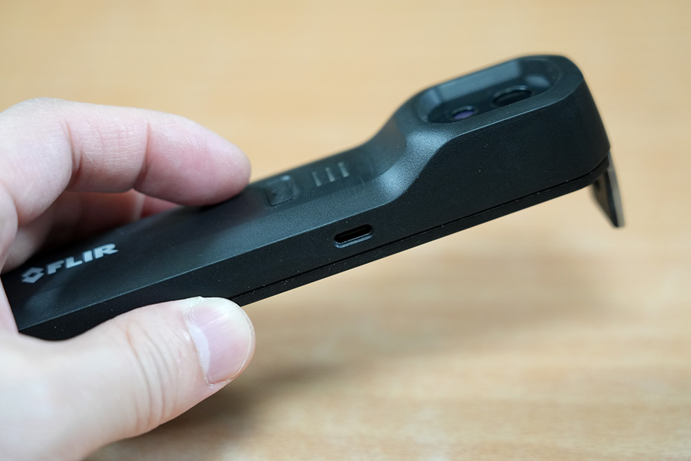 FLIR ONE Edge Pro는 외부에 우레탄 코팅이 되어있는듯 보이고, 전체적으로 어두운 색상 입니다.