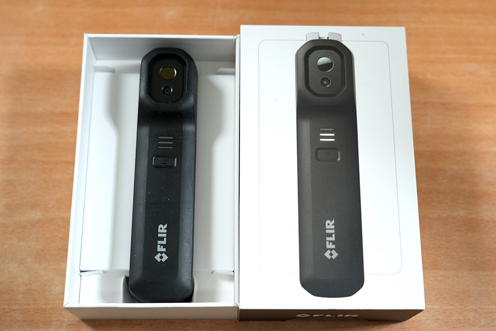 먼저 제품 박스 입니다. 이전의 FLIR ONE PRO는 아주 크기가 작았는데요. 이번에 FLIR ONE Edge Pro는 그것보다는 크기가 커졌습니다. 다만 화면이 없는 형태는 그전과 같은데요. 스마트폰이나 태블릿에 연결해서 사용하는 형태 입니다.
