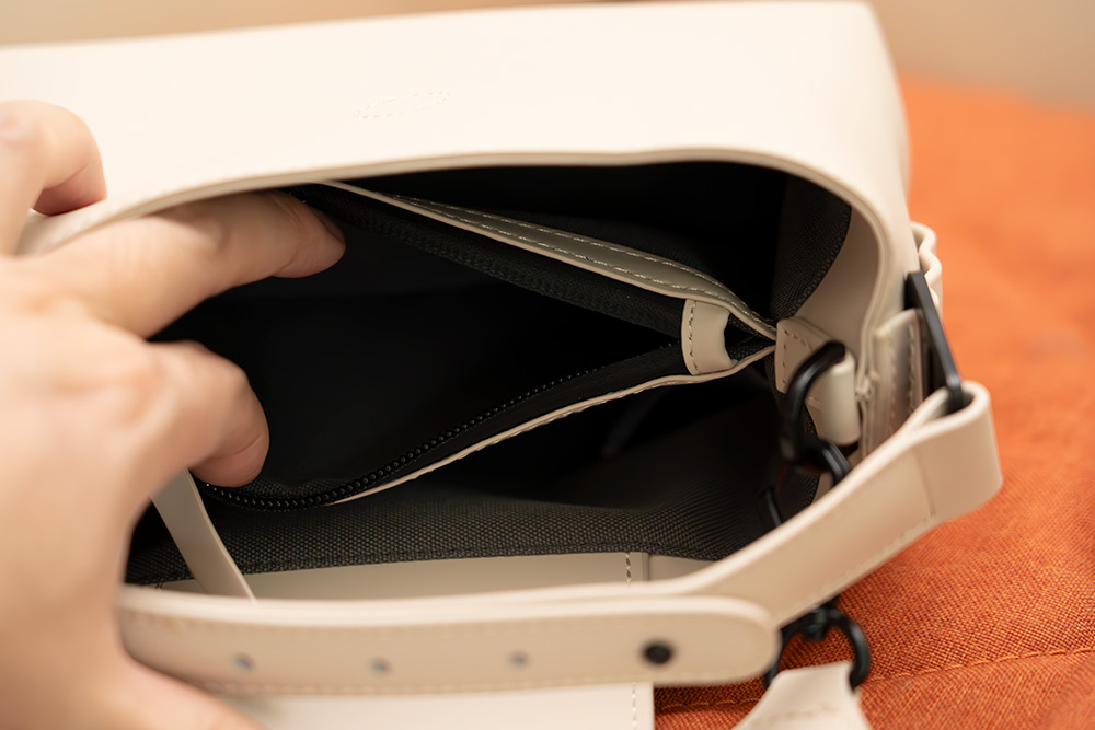 내부에는 2개로 나눠진 공간이 있는데요. 가운데 부분에는 지퍼로 숨겨진 또 다른 공간이 있습니다.