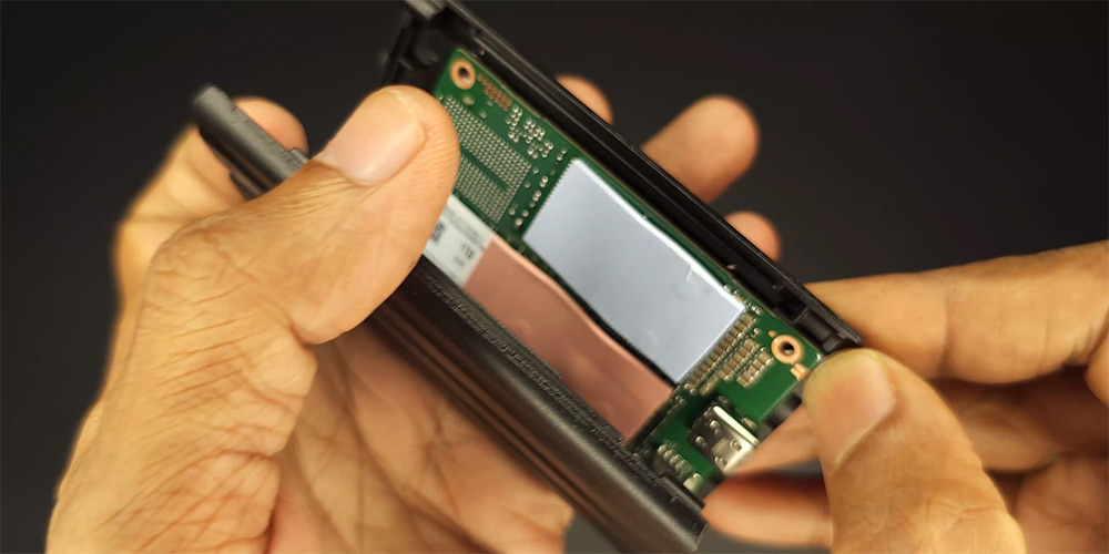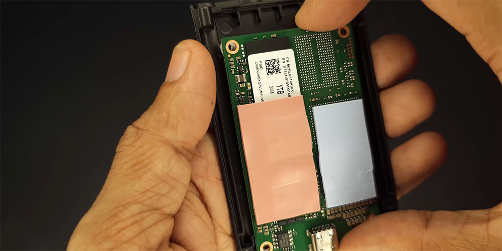 내부를 보면 써멀테이프 등이 붙어 있는데요. 안쪽에는 낸드플래시와 컨트롤러가 있습니다.