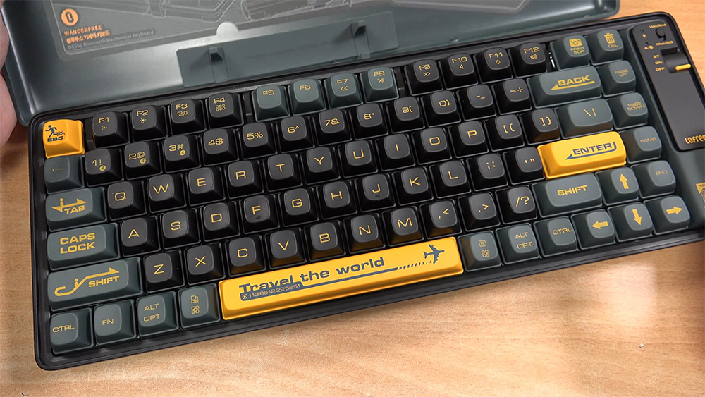 여행을 다니시고 사진을 많이 찍는 분들에게 어울리는 키보드 소개 합니다. 로프리 기계식 키보드 84키 Lofree 휴대용 블루투스 키보드인데요. 여행감성에 맞춰서 케리어 디자인으로 되어있는데요. 외부에 키보드 커버가 있습니다. 로프리 휴대용 블루투스 키보드는 키캡도 특이한데요. 여행에 어울리는 로고들이 키캡에 들어가 있습니다. 키보드 사실 다 비슷비슷하다고 생각해서 좀 디자인적으로 특별하게 만든 것이죠.