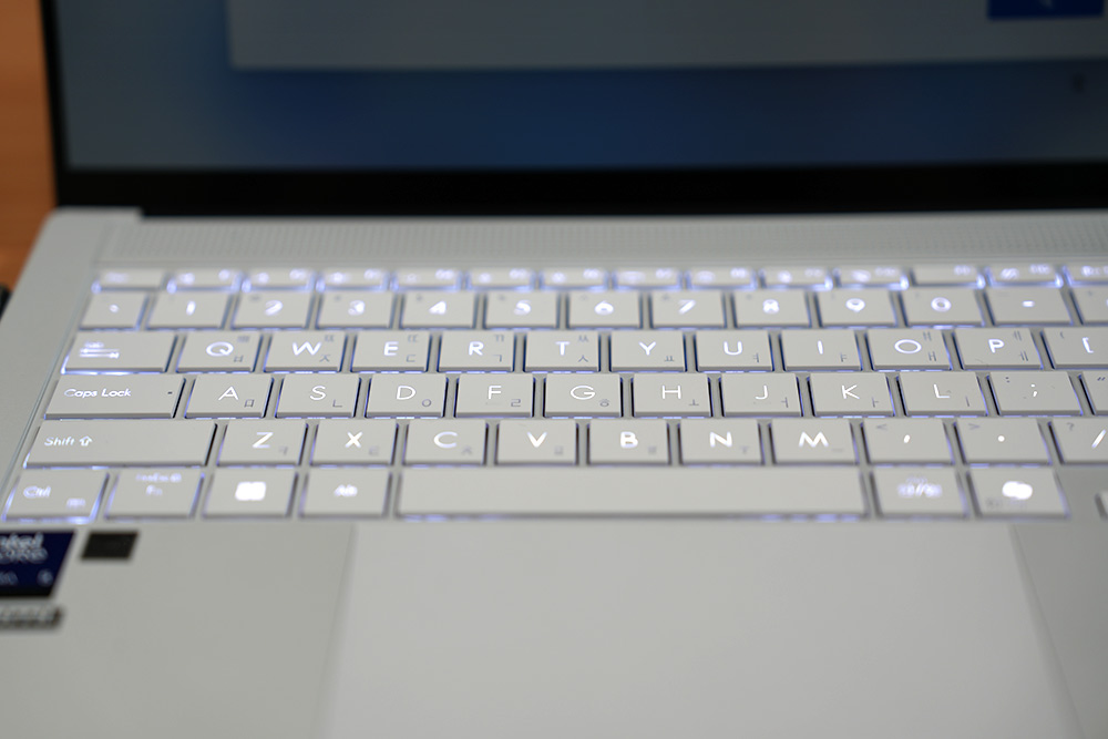 터치패드는 127.0 x 79.17mm 사이즈로 노트북 본체 사이즈에 비해서 상당히 큰데요. 수소성 코팅과 고급 PVD 지문 방지 코팅이 되어있어서 매끄럽고 부드럽게 동작합니다. 내구성이 좋아서 1만회 이상 슬라이드를 해도 새것처럼 매끄럽다고 하는데요. 제가 더 마음에 들었던 부분은 윈도우에서 커서도 매끄럽게 잘 동작하는 부분이었습니다. 반응성이 더 좋아진 것 같네요.